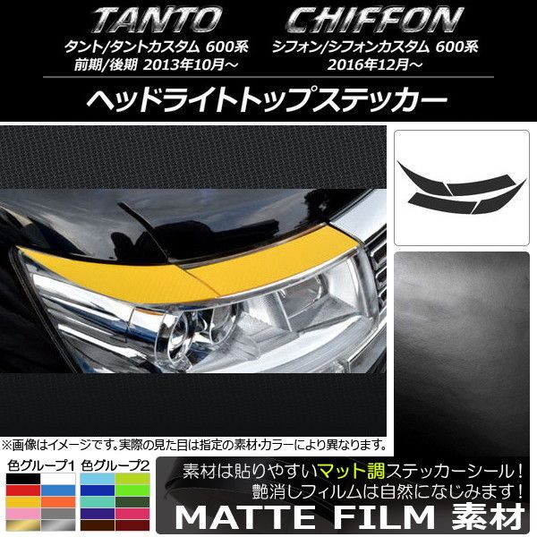 ヘッドライトトップステッカー ダイハツ/スバル タント/カスタム、シフォン/カスタム 600系 マット調 色グループ1 AP-CFMT919