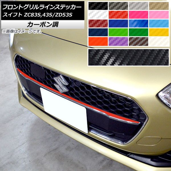 AP フロントグリルラインステッカー カーボン調 スズキ スイフト ZC43S/ZC83S/ZD53S ハイブリッドRS,RS,RSt不可 2018年10月〜 選べる20カラー AP-CF3877