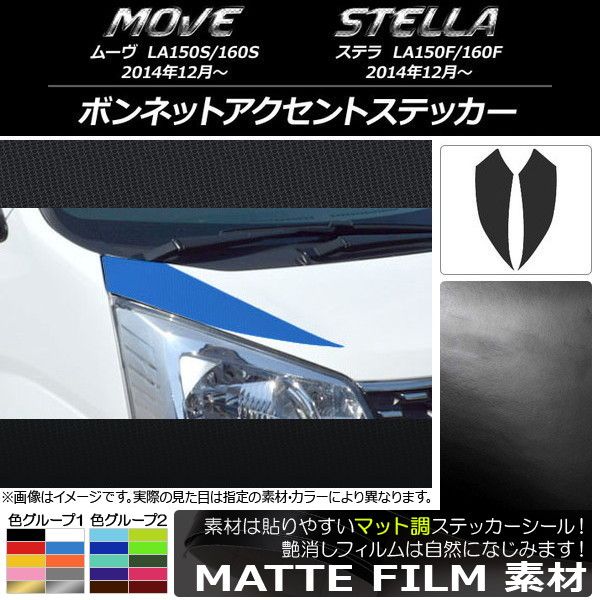 ボンネットアクセントステッカー ダイハツ/スバル ムーヴ,ステラ LA150/LA160 マット調 色グループ2 入数:1セット(2枚) AP-CFMT1175