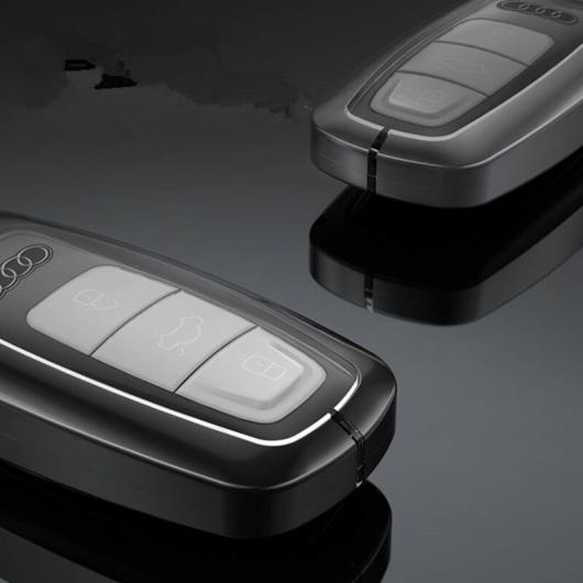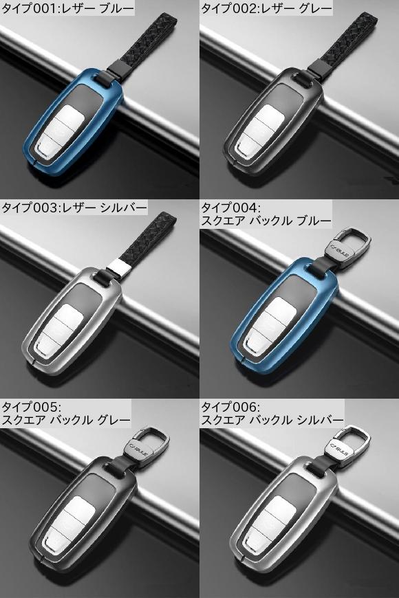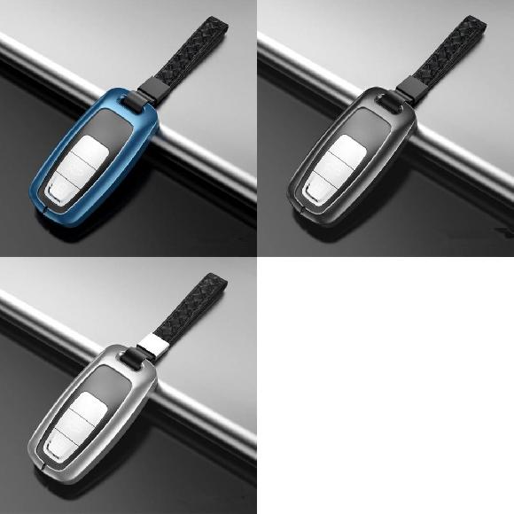 スマート リモート TPU キーケース フル カバー シェル 適用: アウディ/AUDI キー プロテクター ケース キーチェーン レザー ブルー〜レザー シルバー AL-MM-4465 AL