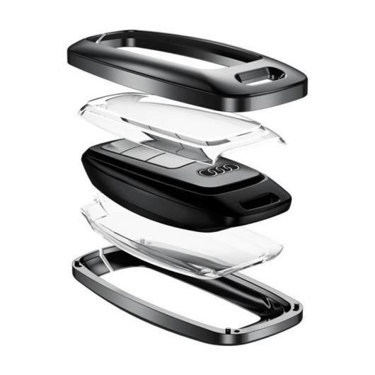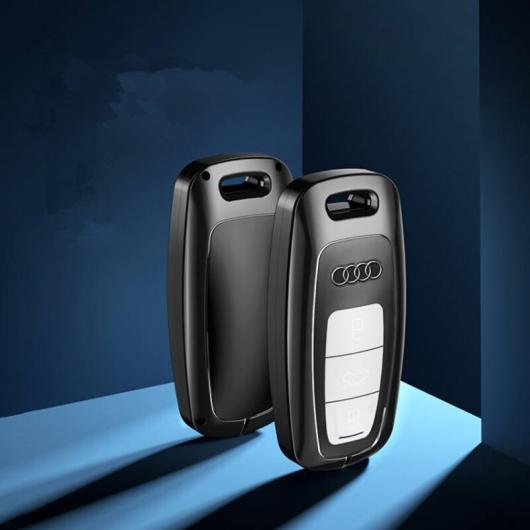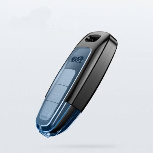 AL スマート リモート TPU キーケース フル カバー シェル 適用: アウディ/AUDI キー プロテクター ケース キーチェーン レザー ブルー〜レザー シルバー AL-MM-4465