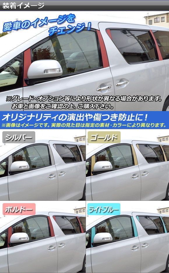 ピラーステッカー トヨタ アルファード/ヴェルファイア 20系 サイドバイザー無し用 マット調 色グループ2 AP-CFMT210 入数:1セット(8枚)