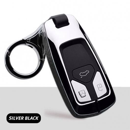 亜鉛 合金 レザー キー フォブ キー ボックス カバー ブラケット シェル キーチェーン 適用: アウディ/AUDI A4L A5 Q5L Q7 A8L A6L シルバーブラック〜グレーブラック AL-MM-4989 AL