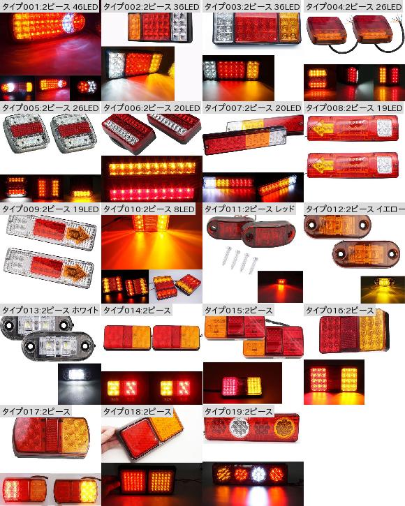 ・タイプ002:2ピース 36LED〜タイプ015:2ピース×タイプA:12V・タイプB:24V (こちらの販売ページです)
