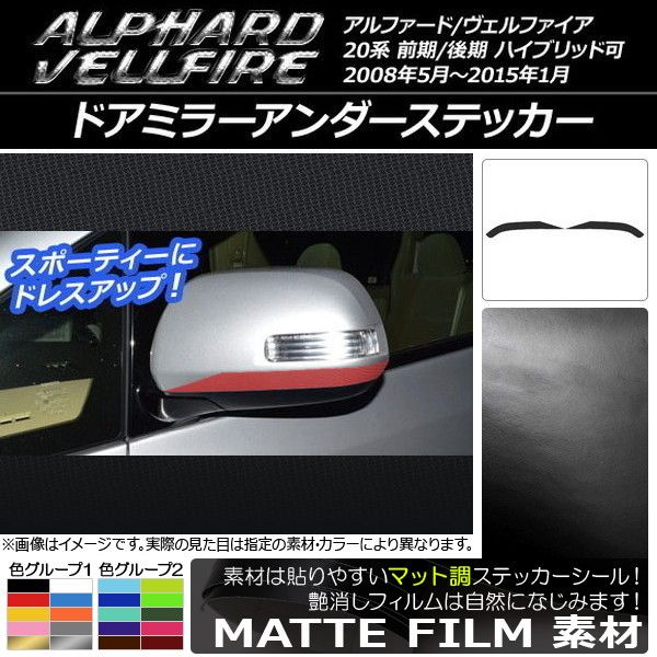 ドアミラーアンダーステッカー マット調 トヨタ アルファード/ヴェルファイア 20系 前期/後期 ハイブリッド可 色グループ2 入数:1セット(2枚) AP-CFMT707