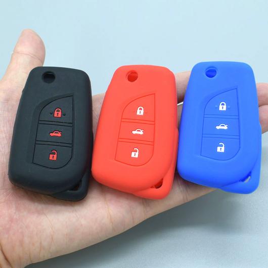 AL キーカバー 適用: トヨタ ヤリス ヴィッツ レイツ/マークX カローラ RAV4 3ボタン シリコン キー ケース ホルダー リモート フォブ ケース カバー ブラック〜ブルー AL-II-4466