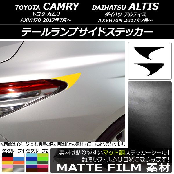 テールランプサイドステッカー マット調 トヨタ/ダイハツ カムリ/アルティス XV70系 2017年07月〜 色グループ2 入数:1セット(2枚) AP-CFMT3128 色グループ2: パープル ブラウン ボルドー マゼンタ ダークグリーン ダークブルー ライトイエロー ライトグリーン ライトブルー シアン