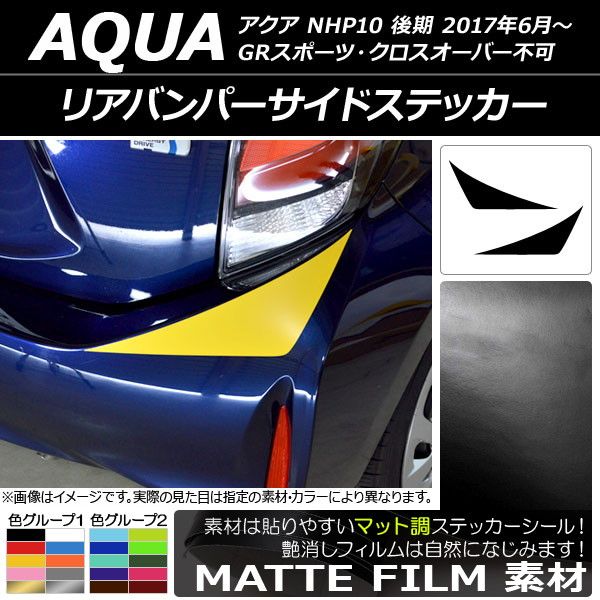 リアバンパーサイドステッカー トヨタ アクア NHP10 後期 2017年06月〜 マット調 色グループ1 AP-CFMT3362 入数:1セット(2枚)