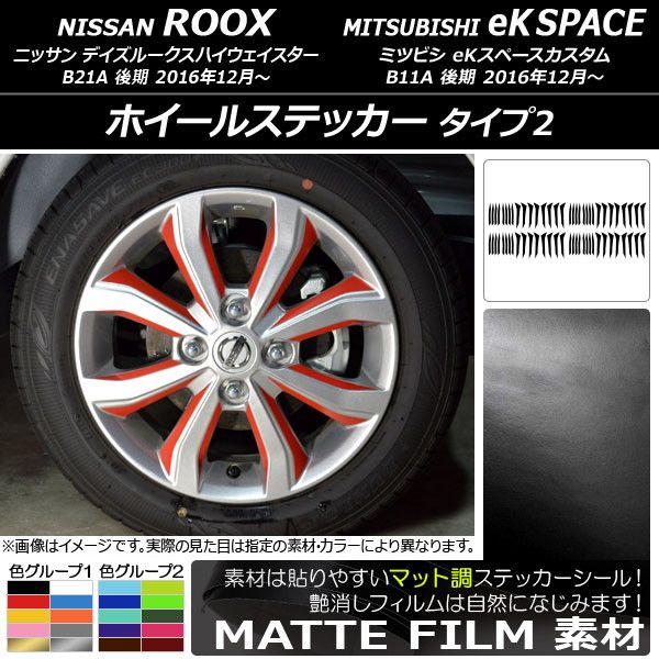 ホイールステッカー ニッサン/ミツビシ デイズルークス/eKスペースカスタム B21A/B11A マット調 タイプ2 色グループ2 AP-CFMT3542 入数:1セット(64枚)