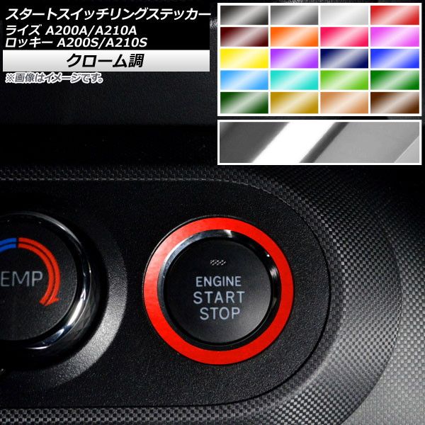 スタートスイッチリングステッカー クローム調 トヨタ ダイハツ ライズ ロッキー A200A,A210A A200S,A210S 2019年11月〜 選べる20カラー AP-CRM4033