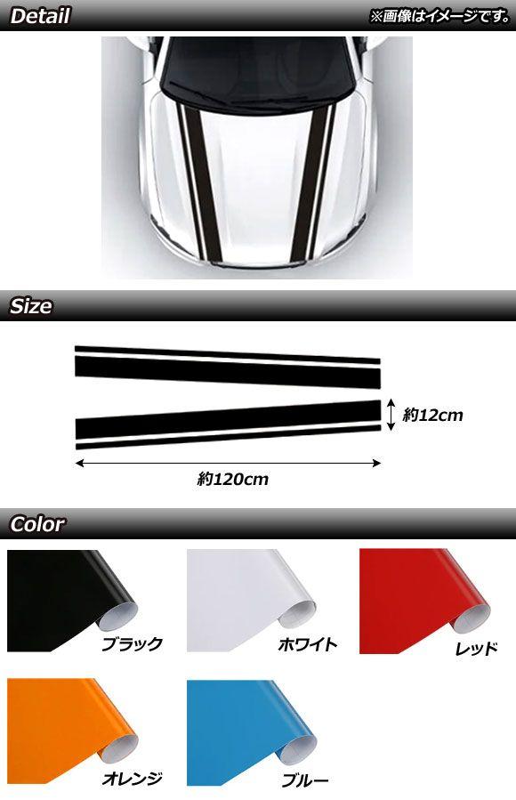 ボンネットステッカー 汎用 選べる5カラー 入数:1セット(2枚) AP-XT565-E カラー: ブラック ホワイト レッド ブルー オレンジ