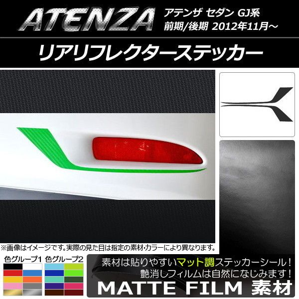 リアリフレクターステッカー マット調 マツダ アテンザセダン GJ系 前期/後期 色グループ1 入数:1セット(2枚) AP-CFMT1706 色グループ1: ブラック ホワイト レッド ブルー イエロー オレンジ ピンク グレー ゴールド シルバー