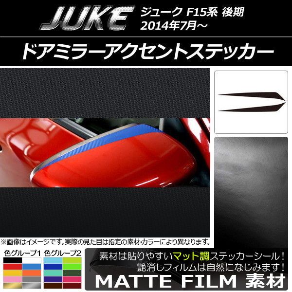 ドアミラーアクセントステッカー マット調 ニッサン ジューク F15系 後期 色グループ1 入数:1セット(2枚) AP-CFMT1825 色グループ1: ブラック ホワイト レッド ブルー イエロー オレンジ ピンク グレー ゴールド シルバー