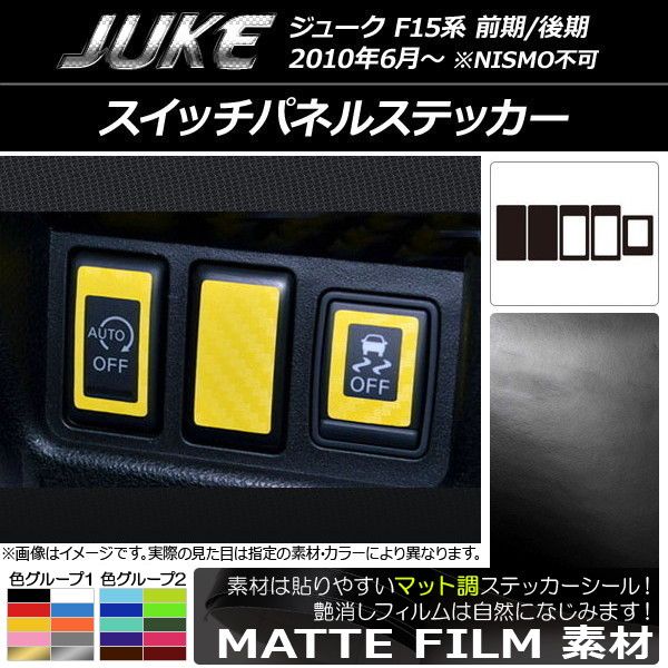 スイッチパネルステッカー マット調 ニッサン ジューク F15系 前期/後期 NISMO不可 色グループ1 入数:1セット(5枚) AP-CFMT1873