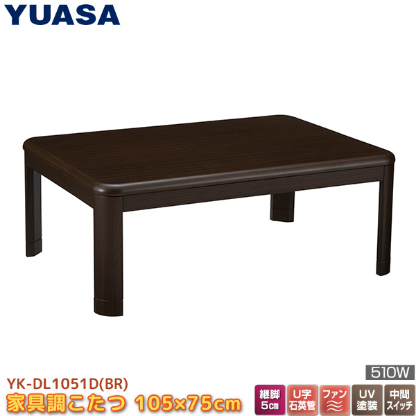 ユアサプライムス こたつテーブル YK-DL1051D(BR) 105×75cm 長方形 継脚付き リビングこたつ UV塗装 温風 角が丸く安全 家具調コタツ YUASA