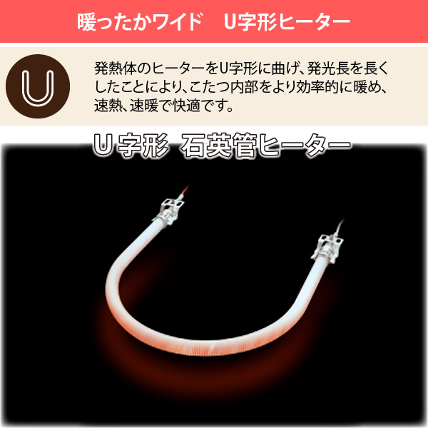 - 発熱面積の広いU字型管採用ヒーター。
