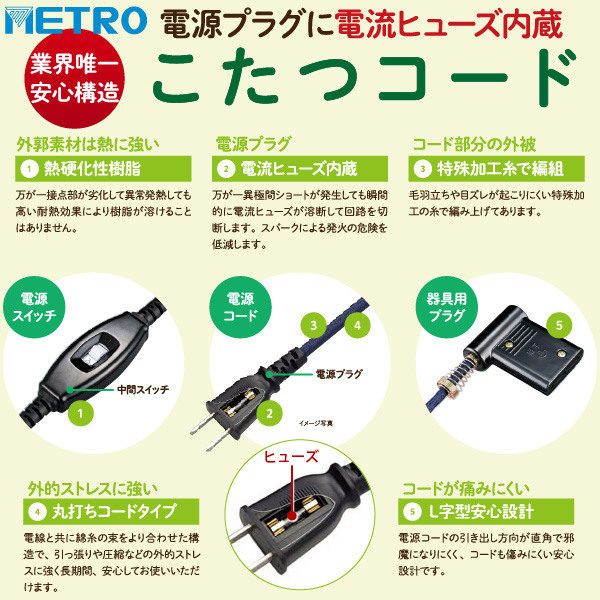 こたつのプロがとことん考え抜いた、安心構造のこたつコードです。