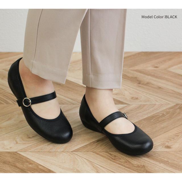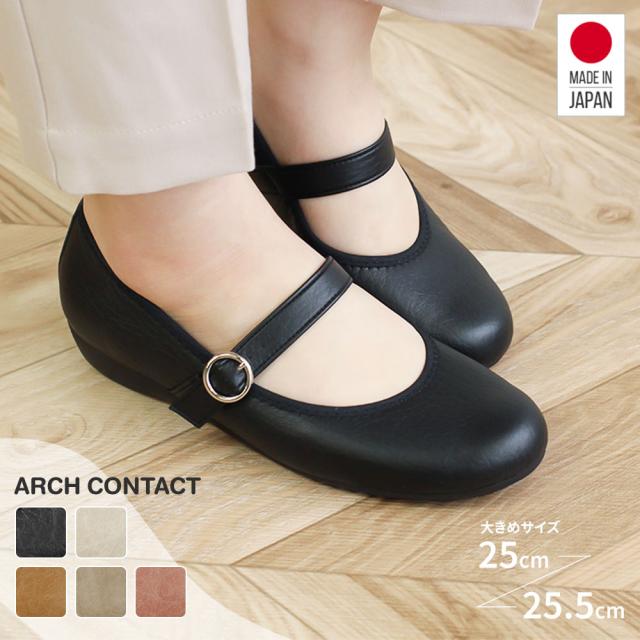 パンプス 痛くない ベルト ストラップ 脱げない 日本製 バレエシューズ フラットシューズ 靴 レディース 歩きやすい 黒 ローヒール コンフォートシューズ ペタンコ靴 25cm 25.5cm 大きいサイズ ヒール 2.5cm ARCHCONTACT アーチコンタクト 45075