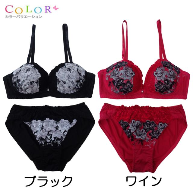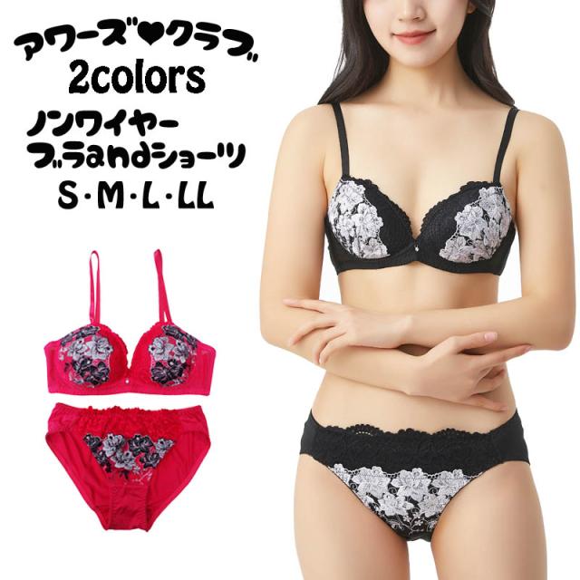 エレガントな刺繍ノンワイヤーブラ&ショーツ ノンワイヤー ブラジャー ブラ ショーツ セット ブラセット ブラショーツ 刺繍 S M L LL 下着 女性 レディース インナー ランジェリー セクシー メール便送料無料