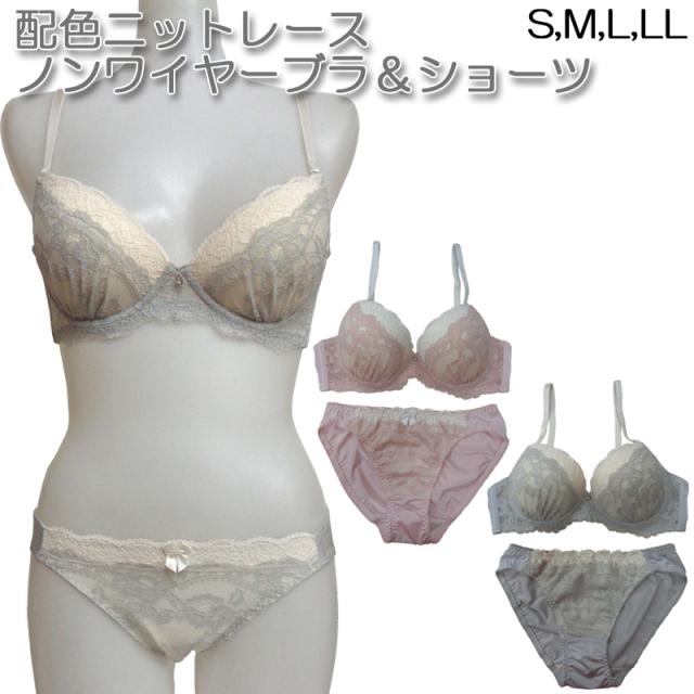 ノンワイヤーブラジャー&ショーツセット ノンワイヤー ブラ ブラジャー ショーツ セット ブラセット S M L LL 下着 女性 レディース インナー 下着 メール便送料無料