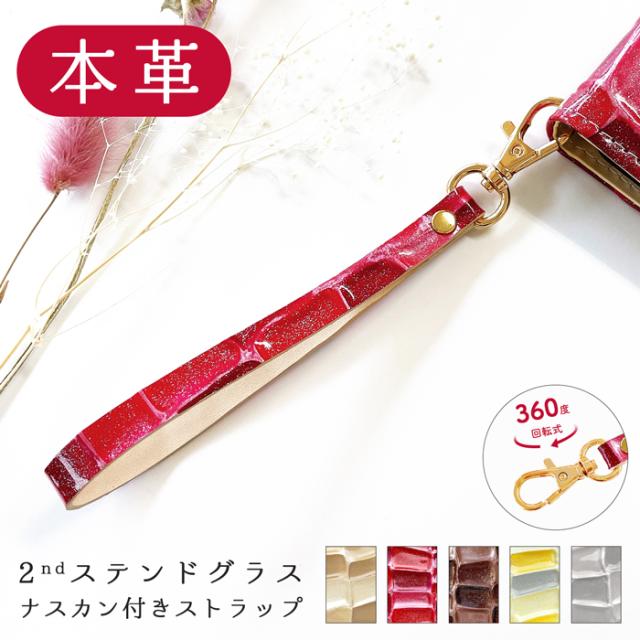 ストラップ 本革 2ndステンドグラス ナスカン付き 携帯ストラップ レザー 携帯 スマホ キーホルダー リストストラップ スマホケース