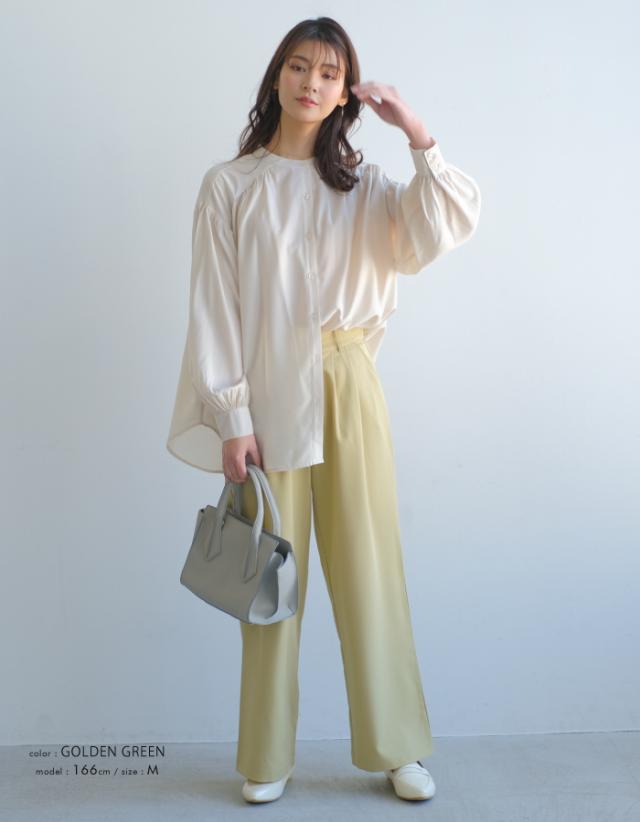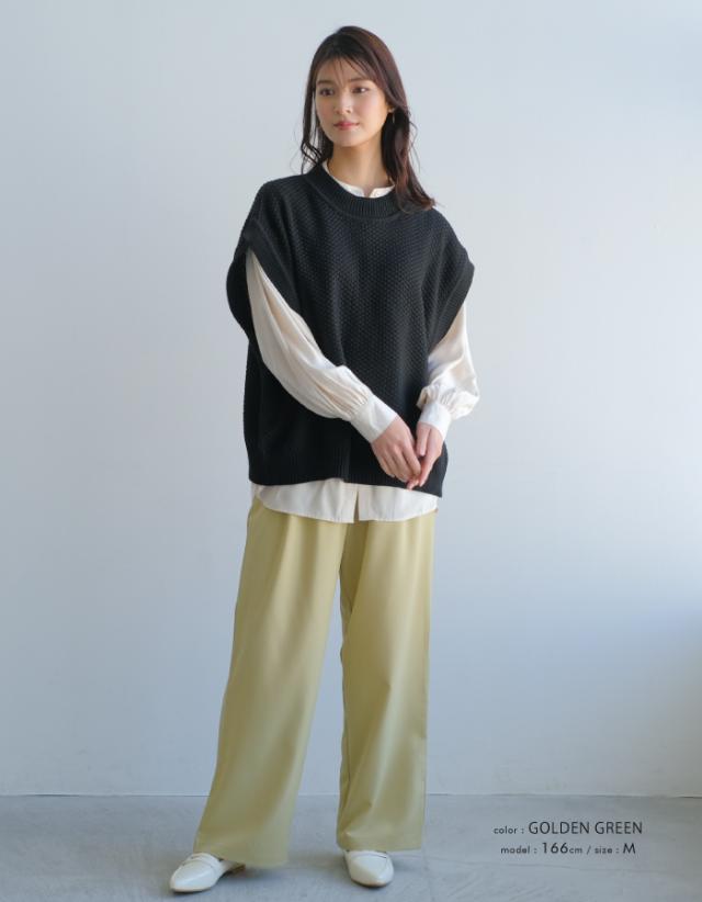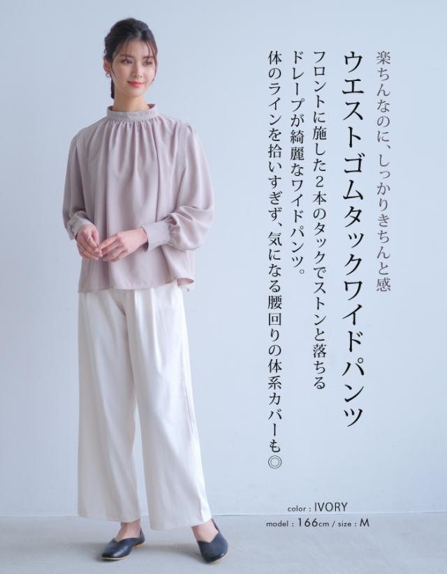 楽ちんなのにしっかりきちんと感!ウエストゴムタックワイドパンツ