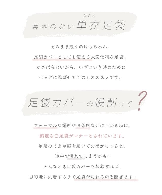 足袋を汚れから守る足袋カバーとしても使用できるので、1足あると大変重宝します。
