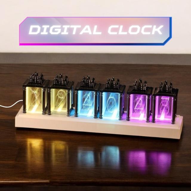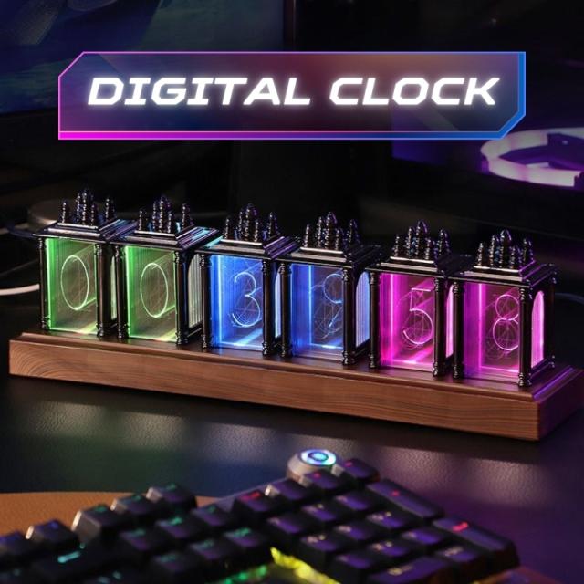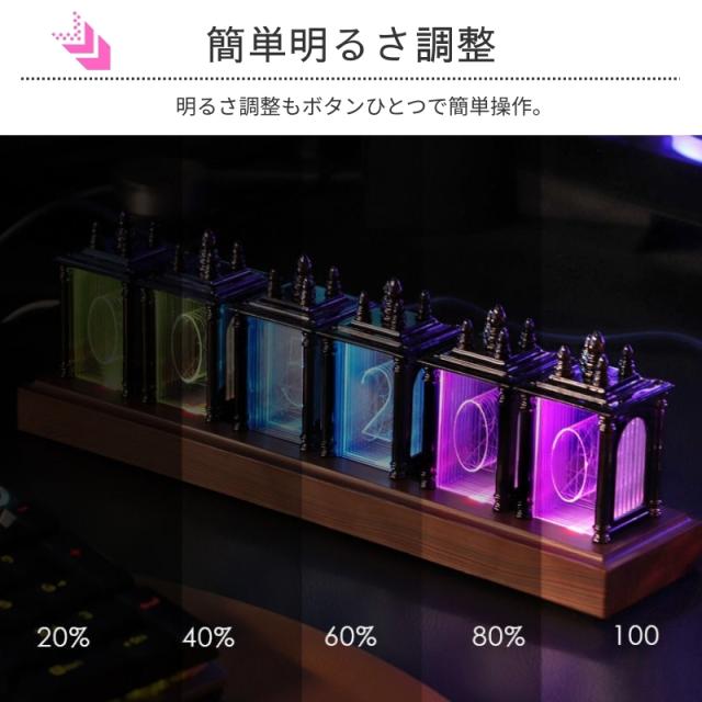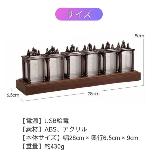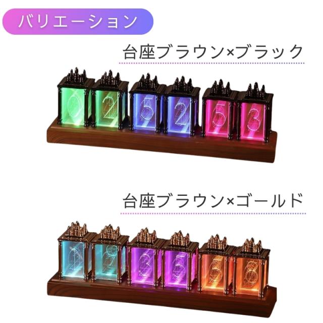 LED ニキシー管風 デジタル時計 置き時計 卓上時計 ネオン 虹 レインボー レトロ メカニック 発光 ゲーム 部屋 インテリア バー カフェ 雑貨 USB給電