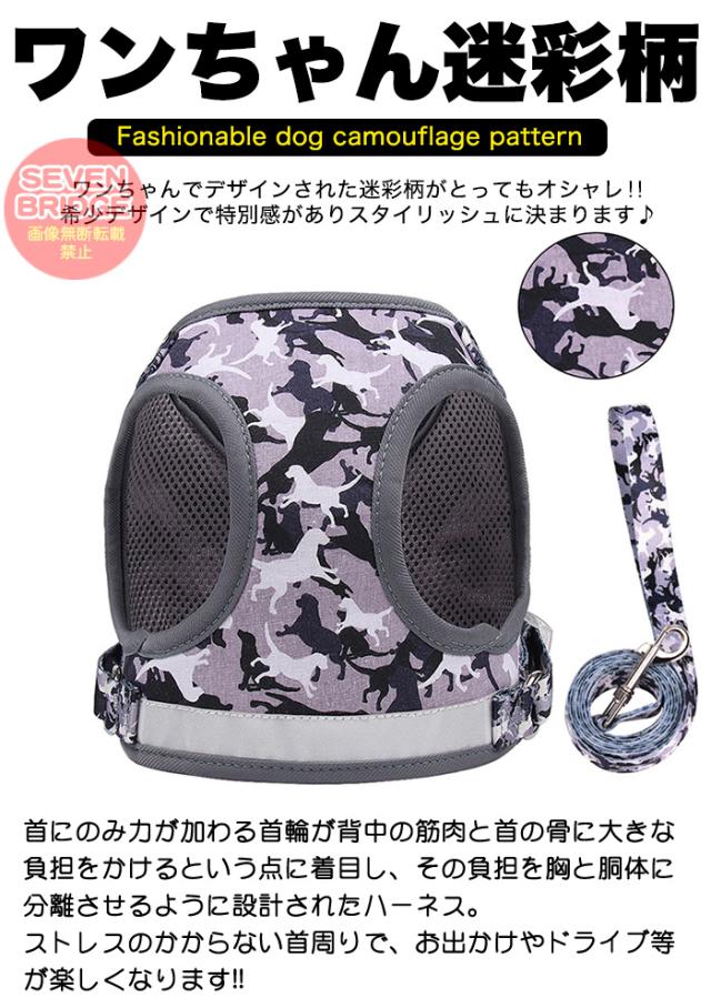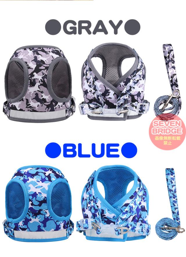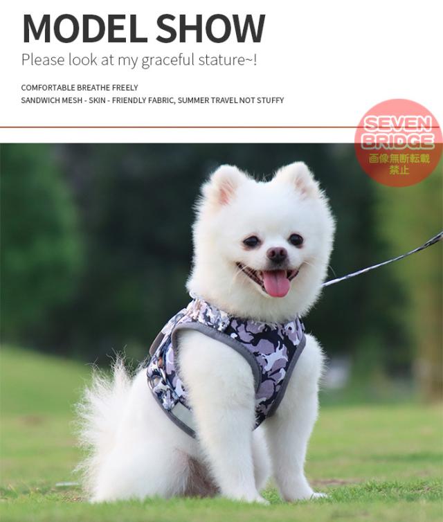 犬 猫 ハーネス リード付 ワンちゃん 迷彩 メッシュ ウェアハーネス ペット 服 胴輪 キャット ドッグ h0400