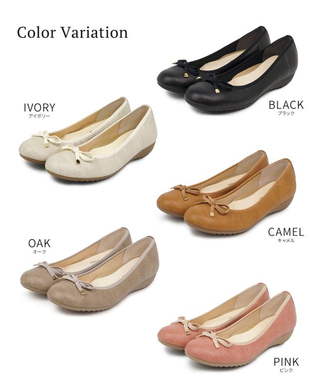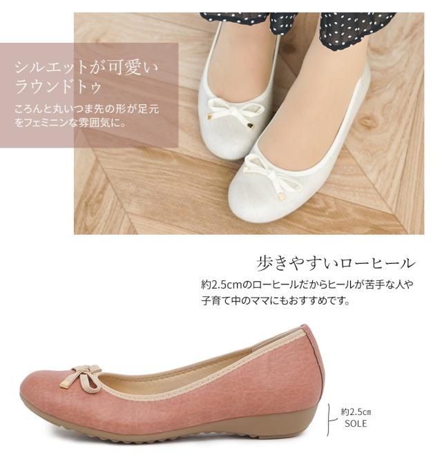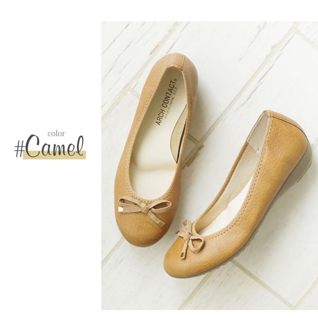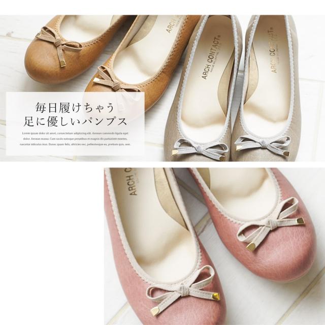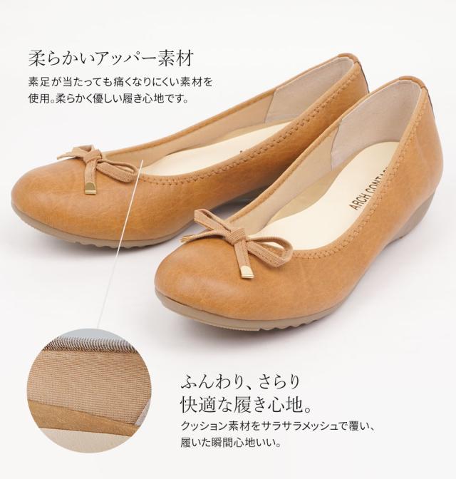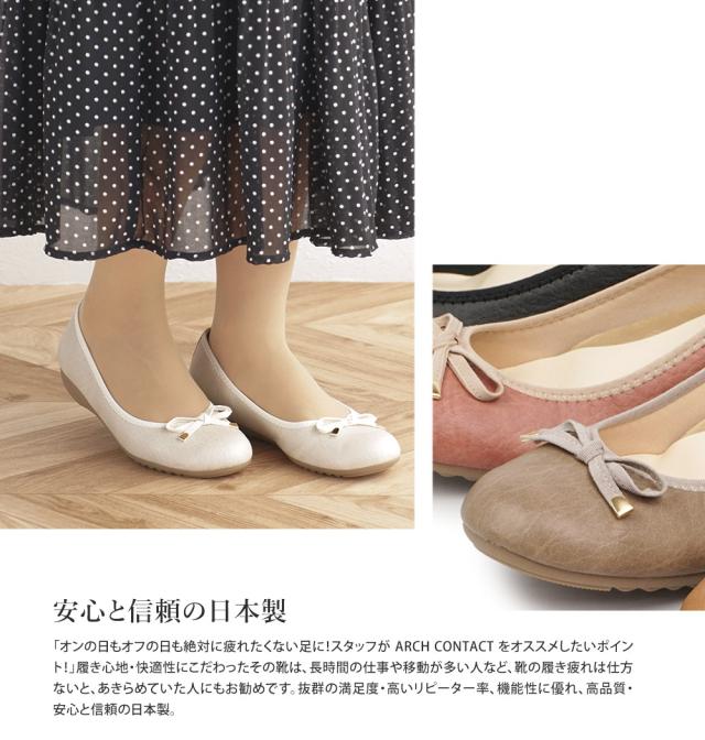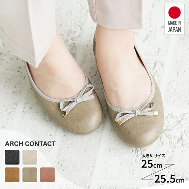 パンプス 痛くない リボン 脱げない 日本製 バレエシューズ フラットシューズ 靴 レディース 歩きやすい 黒 ローヒール コンフォートシューズ 低反発 ペタンコ靴 25cm 25.5cm 大きいサイズ ヒール 2.5cm ARCHCONTACT アーチコンタクト 45076