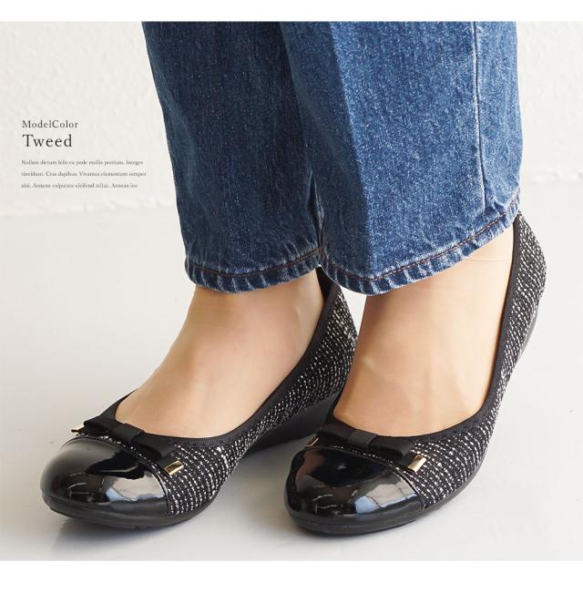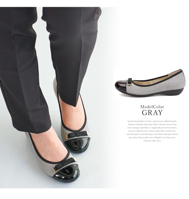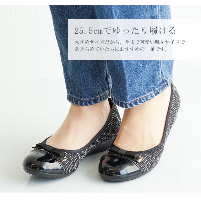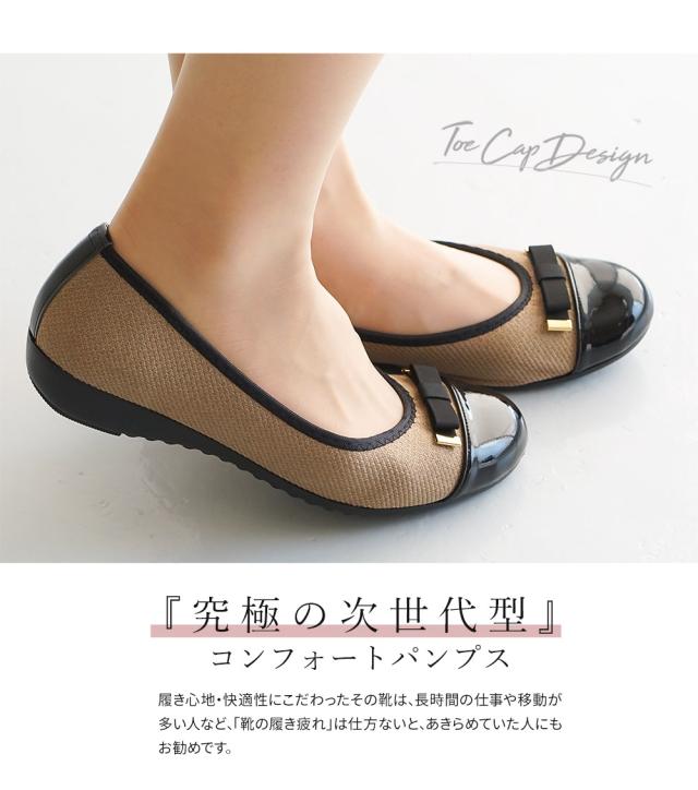 パンプス 痛くない リボン 脱げない 日本製 バレエシューズ フラットシューズ 靴 レディース 歩きやすい 黒 ローヒール コンフォートシューズ 低反発 ペタンコ靴 25cm 25.5cm 大きいサイズ ヒール 2.5cm ARCHCONTACT アーチコンタクト 45082
