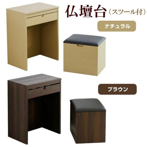 仏壇台 木製 仏壇下台 幅60 上置き仏壇用 台 棚 LU-423 収納式スツール付き 椅子付き キャスター付 スライドテーブル 引き出し モダン デスク スリム 省スペース