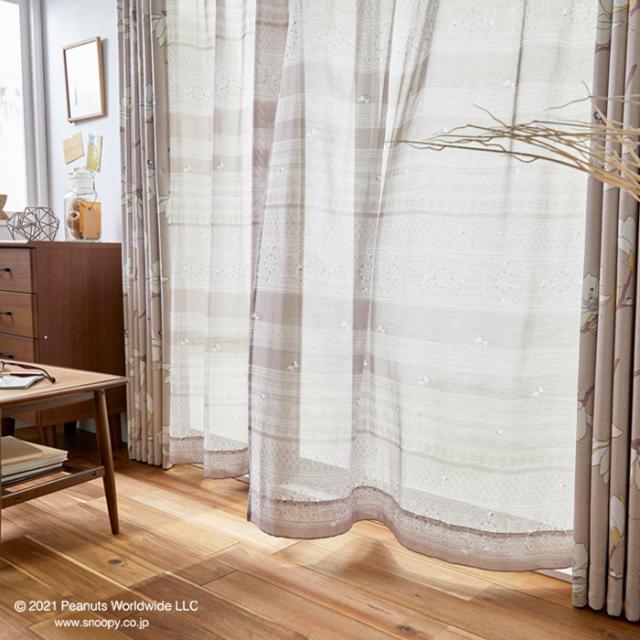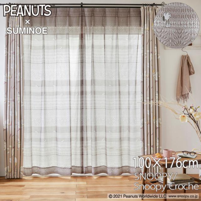 スヌーピー レースカーテン 100×176cm ピーナッツ/スヌーピークロッシェ 1枚入り 洗える SNOOPY PEANUTS 住之江 日本製 P1052 BE