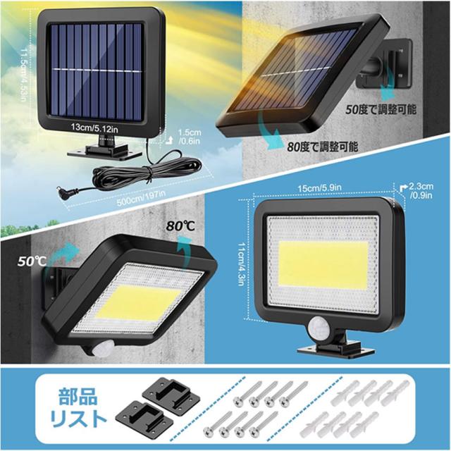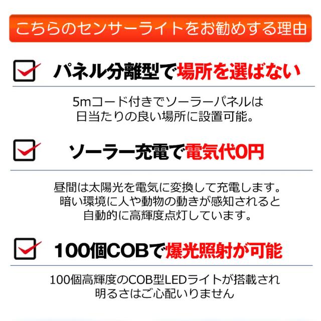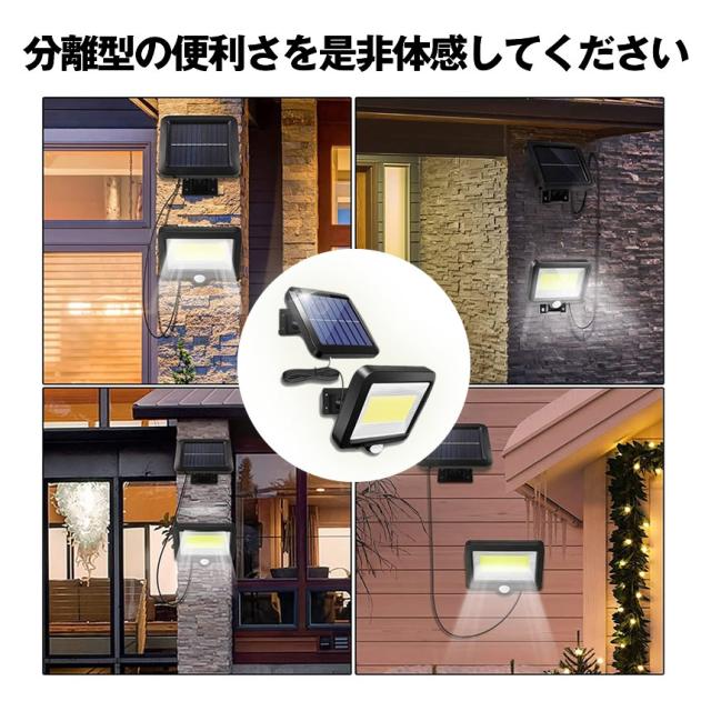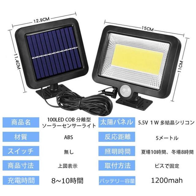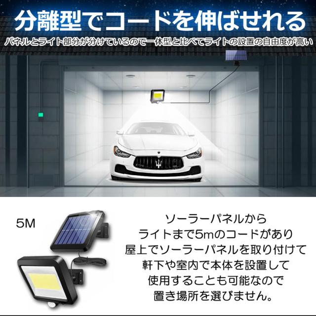 2個セット ソーラーライト 屋外 防水 ソーラーセンサーライト 人感センサーライト パネル 分離型 5Mコード 防犯ライト 防災ライト 壁掛け式 100LED 高輝度 屋外照明 玄関 駐車場 庭 自動点灯 庭 ガーデンライト