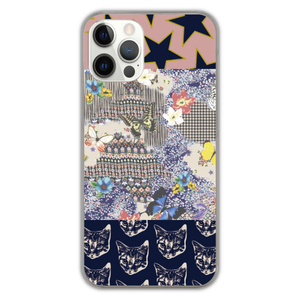 iPhone17 ケース スカラー スマホケース iPhone 16e iPhone16 16Pro 16 Pro Max アイフォン 15 14 13 12 Pro 11 スマホケース 軽量 スマホカバー 全機種対応 おしゃれ ScoLar ネコ 星 チョウとお花の コラージュ かわいいデザイン