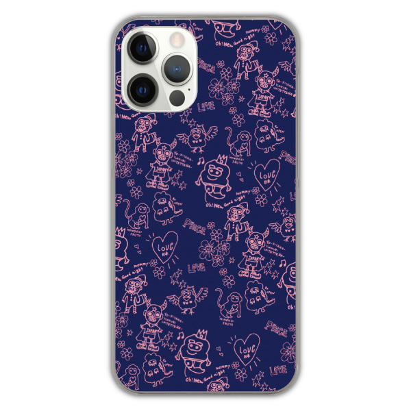iPhone Air ケース スカラー スマホケース iPhone17 iPhone 16e 16 16Pro 16 Pro Max アイフォン 15 14 SE 第3世代 スマホケース 軽量 スマホカバー 全機種対応 おしゃれ ScoLar 線描き コミカルなキャラ達 ハート ネイビー系 総柄
