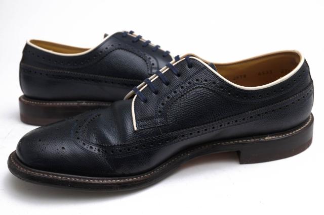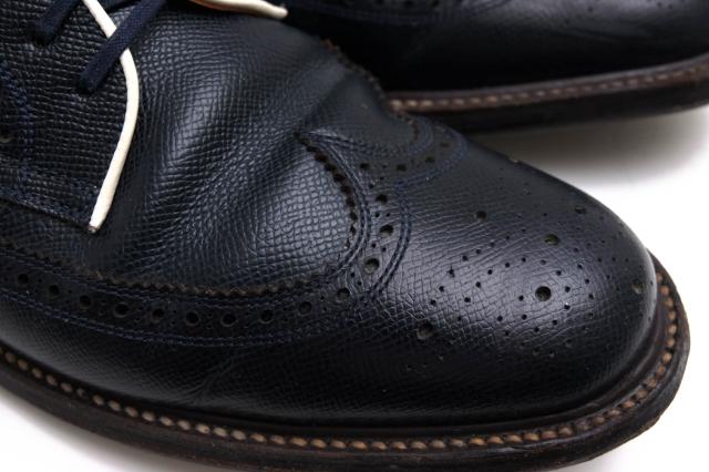 牛革の鞣し加工後にシボ型押しを施しクラシカルな雰囲気、定番のサドルシューズと同じ木型を用いて製作されたウィングチップシューズ。グットイヤーウェルト製法を採用し、耐水性に富み長時間履いても疲れにくく履くほどに足に馴染んでいくので長く愛用いただけます。