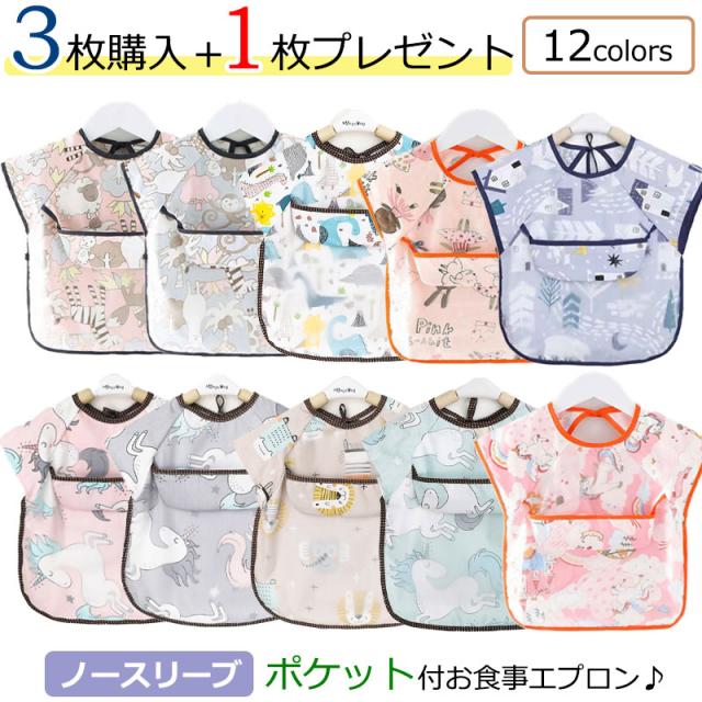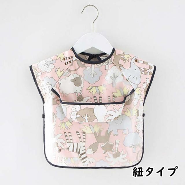 メール便送料無料 お食事用エプロン よだれかけ ポケット付き 夏用 男の子 女の子 半袖 ノースリーブ 紐タイプ 防水 洗い替え エプロン 食べこぼし防止 防水加工 洗濯機可 お食事 通園 園児 夏用 涼しい