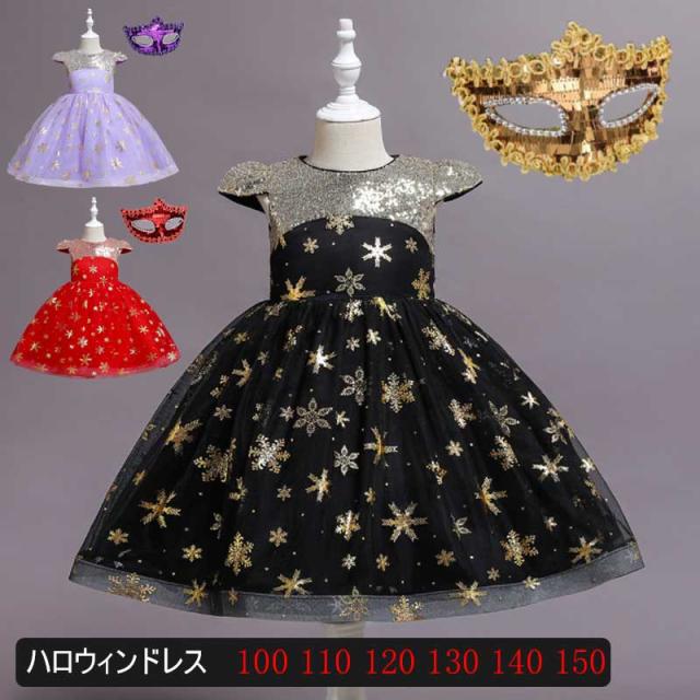 送料無料 子供 ハロウィン 衣装 ハロウィン ドレス ハロウィン アイマスク 子供 ドレス 魔女 ハロウィン ドレス ハロウィン 仮装 コスチューム ワンピース コスプレ衣装 カラードレス カラー ドレス アイマスク付き 2点セット