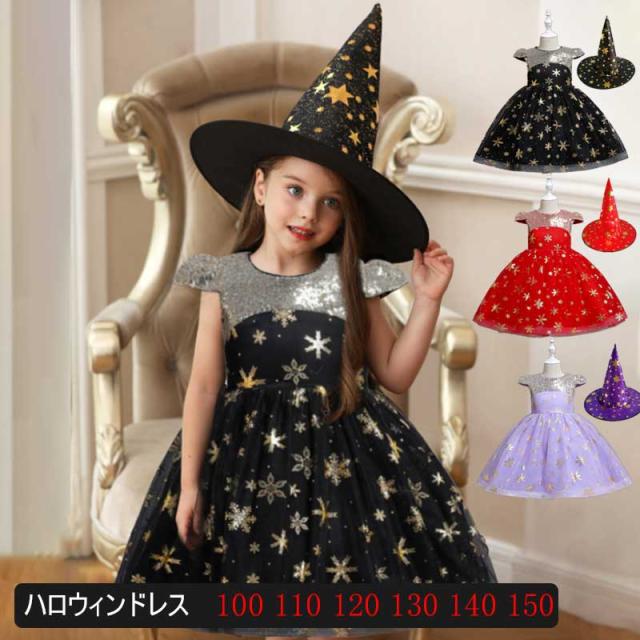 子供 ハロウィン 衣装 ハロウィン ドレス ハロウィン 帽子 子供 ドレス 魔女 ハロウィン ドレス ハロウィン 仮装 コスチューム ワンピース コスプレ衣装 カラードレス カラー ドレス 帽子付き 2点セット