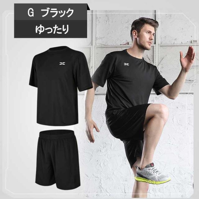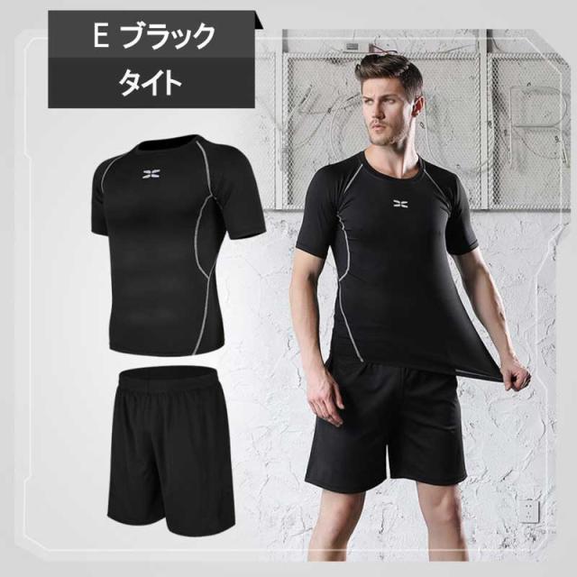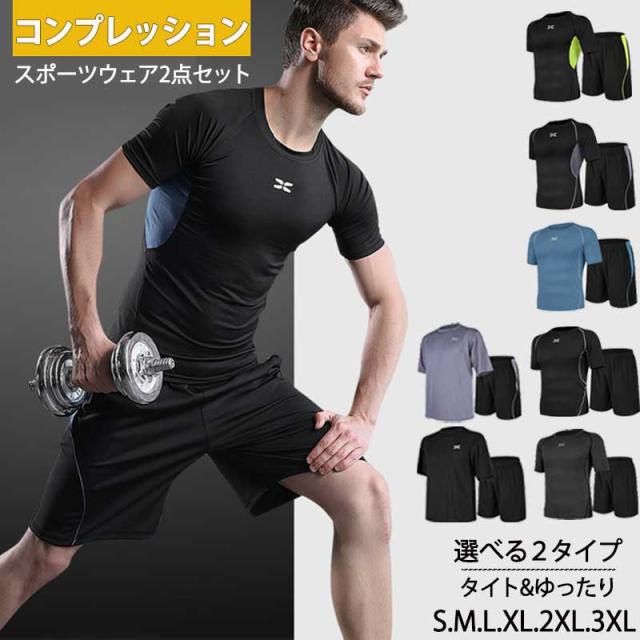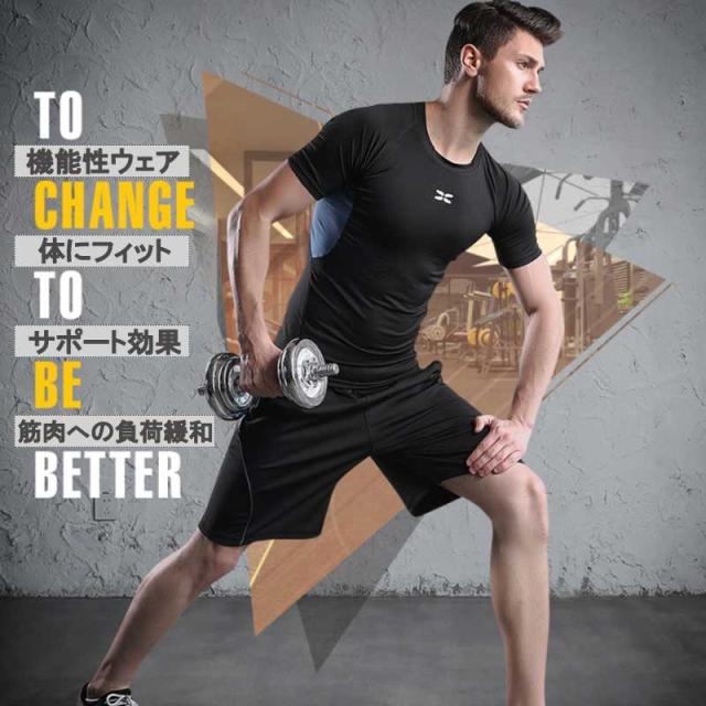 メンズスポーツウェア コンプレッションウェア メンズ 2点セット 上下セット 半袖 ハーフパンツ ランニングウェア トレーニングウェア スポーツウェア 大きいサイズ 快適 通気性
