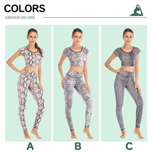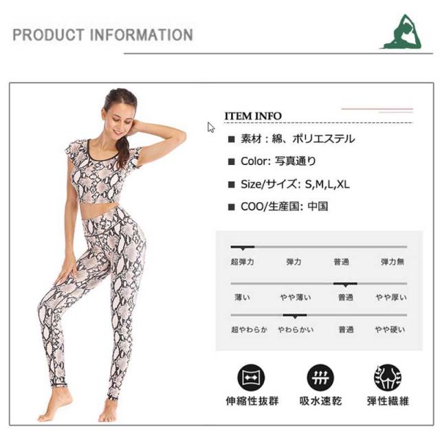 メール便送料無料 ヨガパンツ ヨガウェア 2点セット 上下セット パイソン柄 ピラティス トップス レディース セットアップ レッスン着 レギンス ヨガ かわいい S M L XL カップ付かない