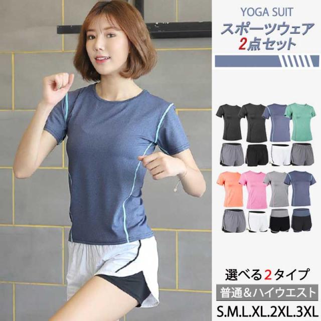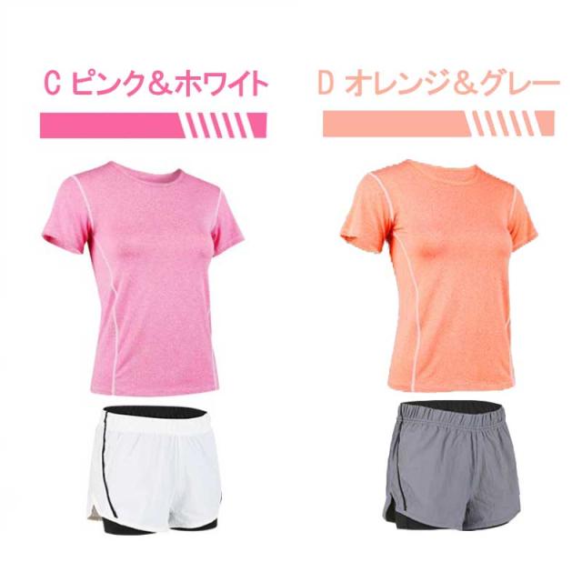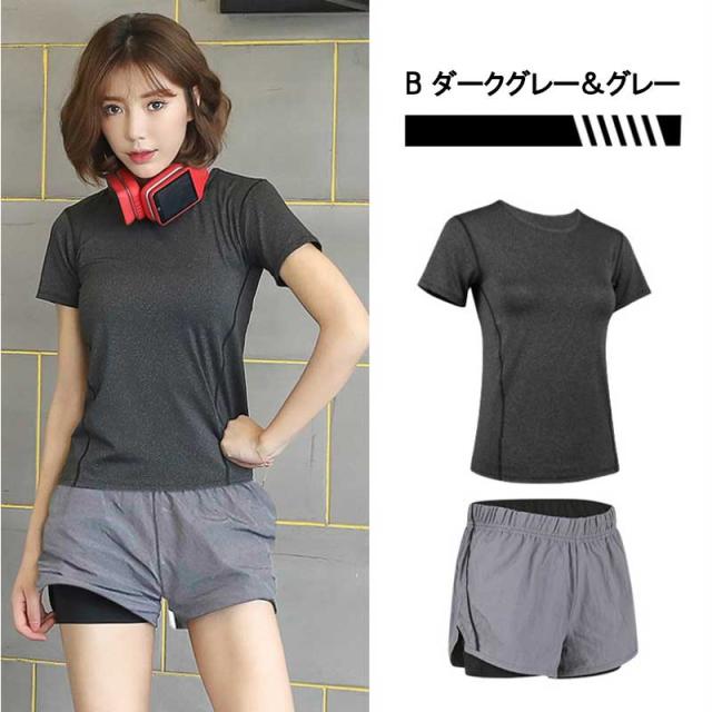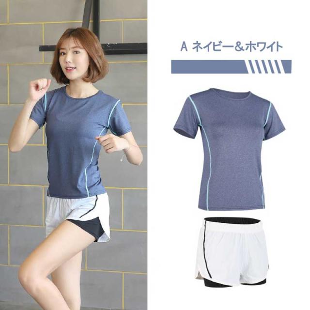 メール便送料無料 ヨガウェア スポーツウェア 上下セット 2点セット ヨガウェア フィットネスウェア トレーニングウェア トップス レディース Tシャツ ショットパンツ 春夏秋冬 ヨガ ダンス ジョギング スポーツウェア 吸水 速乾 通気性
