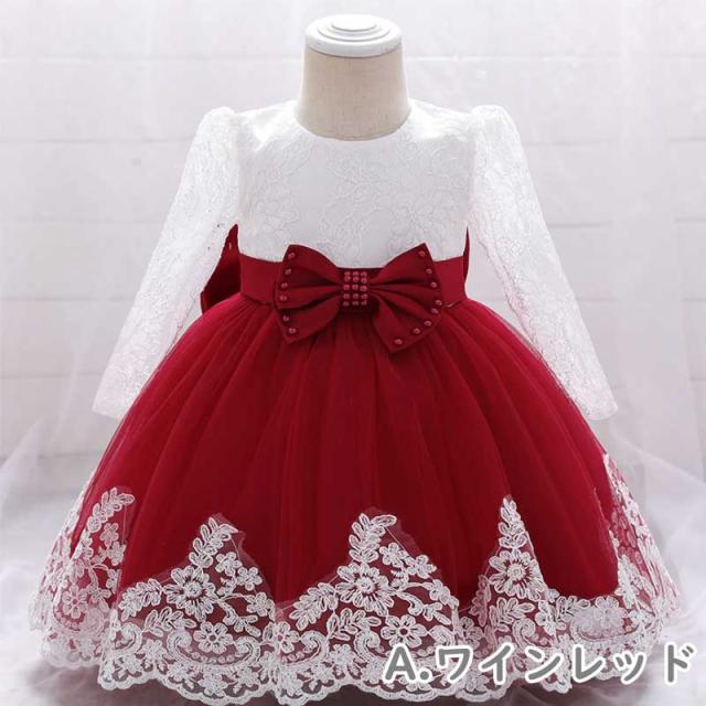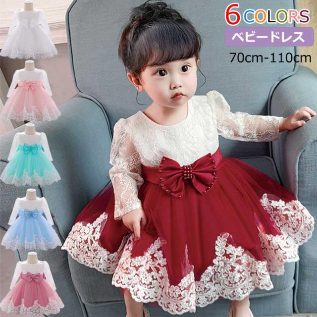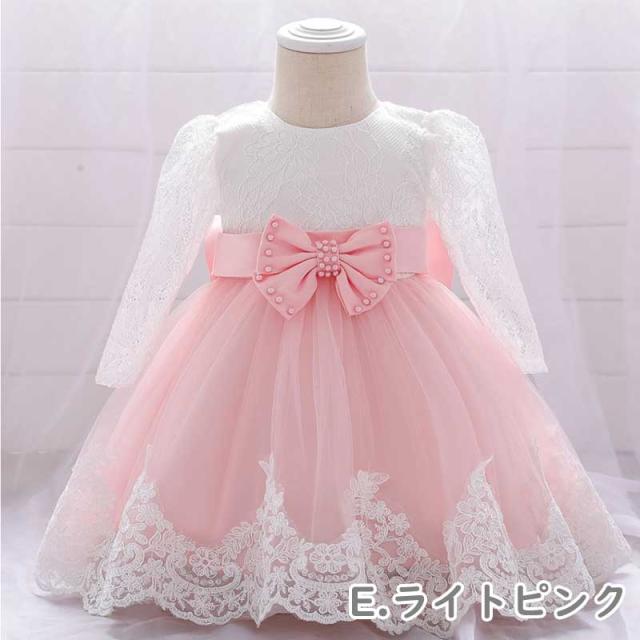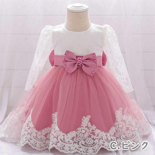 メール便送料無料 子供ドレス ベビードレス 長袖 リボン パーティー パーティードレス キッズドレス 結婚式 お宮参ベビードレス赤ちゃんドレス 新生児 フォーマル お誕生日 ギフト プリンセス ワンピース