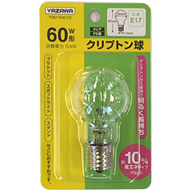 ヤザワ 省エネクリプトンランプ60W形クリア P351754CYZ