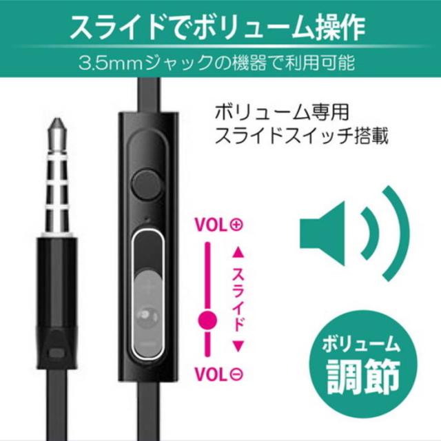〇スライドでボリューム操作スライドスイッチでボリュームで直感的かつ瞬時に音量をコントロールできます。音量調節のためにボタンを何度もクリックする必要はありません。〇3.5mm端子のフラットケーブル多くの機器で利用可能な3.5mmイヤホンジャックを採用。幅約1.2mのフラットケーブルにより絡まりにくい設計です。〇マイク付きコントローラー電話の着信や音楽の操作をワンボタンでコントロールできます。