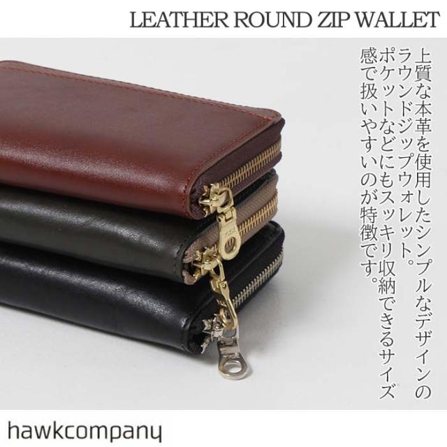 HawkCompany ホークカンパニー 財布 ラウンドジップウォレット ラウンドジップ 折り畳み 本革 革 レザー コンパクト シンプル カジュアル 定番 おしゃれ メンズ 男性 大人 アメカジ ストリート きれいめ カジュアル ブランド シンプル 丈夫 頑丈 タフ 黒 茶色 緑 ブラック ブラウン グリーン