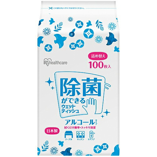 (まとめ買い)アイリスオーヤマ 日本製 除菌ができるウェットティッシュ アルコールタイプ 詰め替え 100枚入 WTT-100A 〔5個セット〕 【北海道・沖縄・離島配送不可】