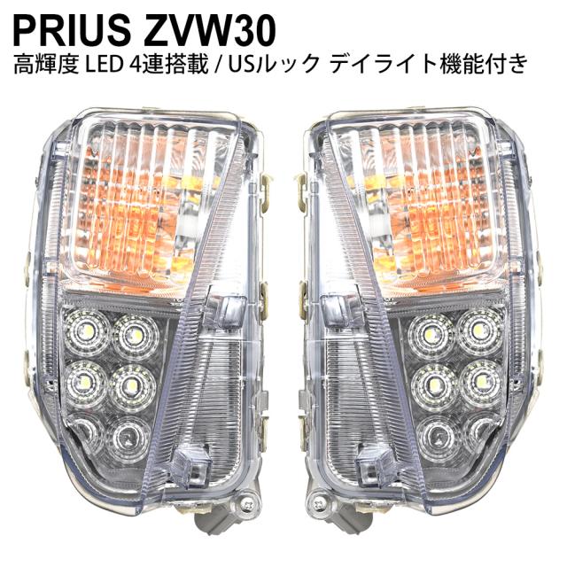 30プリウス プリウス用 プリウス用パーツ プリウス30系 パーツ プリウスphv プリウス30後期 外装 外装用品 高輝度LED デイライト機能 ドレスアップ エアロ プリウス 30系 後期 ウインカー フロントウインカー デイライト US仕様 北米仕様 左右セット クリアレンズ カスタム カスタムパーツ パーツ 外装 プリウス30
