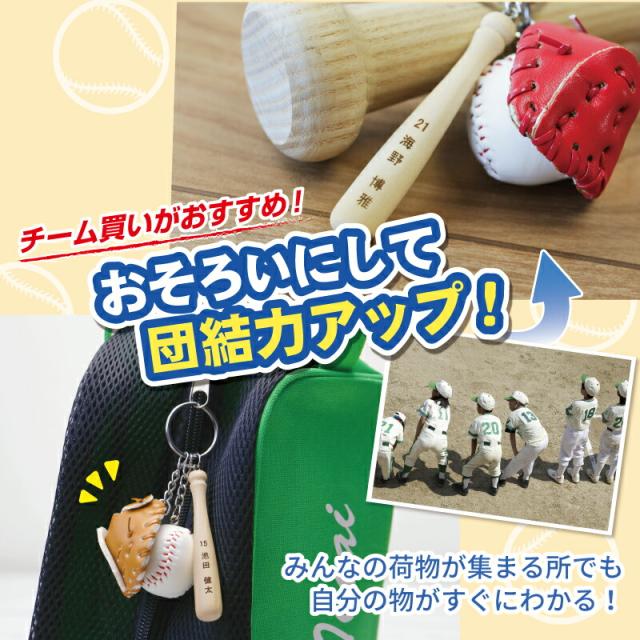野球道具がちっちゃくなっちゃった! 本物そっくり、ミニチュア野球キーホルダー♪ 野球部、ベースボールチーム の 卒業・卒団の記念品におすすめです。 1. 超リアル グローブとボールは、フェイクレザーを使用して 縫い合わされているから、手に持った触感もリアル。 バットは木製でかわいさもバツグン! 大会 や 試合 の時の お守り、応援グッズ として プレゼントしても喜ばれます。 お揃いで持てば、チームの士気も高まり 団結力・絆が深まること間違いなし! 2. 選べるカラー グローブのカラーは、 ・ レッド ・ ベージュ ・ ブラック の3色をご用意。 友達同士 や 学年 ごとに色違いで用具入れやバッグに付ければ、 みんなが集まる場所でも、自分の物が一目瞭然! お揃いのキーホルダーは、きっと注目の的になりますよ♪ 3. 名入れ無料 木製のバットに、思い出のつまった 背番号 と お名前 を無料で彫刻します。 消える事のないレーザーによる彫刻は、記憶に残るプレゼント。 見るたびに“あの時”の汗や涙、そして笑顔が蘇ることでしょう。 《 レーザー彫刻 》 名入れギフト専門店の当店では、熟練の技術者が一点一点 心を込めて 大切なお名前やメッセージを商品に刻み込みます。 当店が得意とするレーザー彫刻ですので、 文字が消えたり剥がれたりする心配がありません。 くっきりとした文字で小さくても存在感抜群です。 ずっと消えない彫刻は、記念の贈り物として大変喜ばれ 大切にお使いいただけることでしょう。 「 どうして名前入りが喜ばれるの? 」 普段あまりにも身近にあるので、自分の名前のことを深く考えることはありませんが 贈られた商品に自分の名前が刻まれていたらどうでしょう。 しかも特殊な技法で彫り込まれていたり素敵なデザインとなってプリントされていたり… その瞬間、ただの“商品”ではなく“自分だけの大切なもの”に変わります。 そして贈ってくれた方の真心を感じ、自然に笑顔がこぼれることでしょう。 名前はその人にとって唯一無二、かけがえのないものです。 私たちはそのお名前を大切に、贈る人、贈られる人、 両方の笑顔を想いながら商品を送り出します。 《 あんしんラッピング 》 注文者様へお届けする場合は、商品とギフトケースを 別々にお入れして発送しております。 商品に間違いが無いよう万全を期しておりますが 中身を確認してからチームの皆様にお渡しできるので さらに安心です。 [ こんなシーンに選ばれています ] ・ 野球部 の 引退 記念品 卒業記念品 として ・ 野球好き の 友達 彼氏 彼女 への プレゼント に ・ 卒業式 に 保護者 から コーチ 担当 顧問 の先生へ ・ クラブチーム を 卒団 する 子供たち へ ・ 練習をがんばる お子さん へ 応援 の気持ちを込めて ・ 大会 試合 を控えた 先輩 後輩 に お守り として |